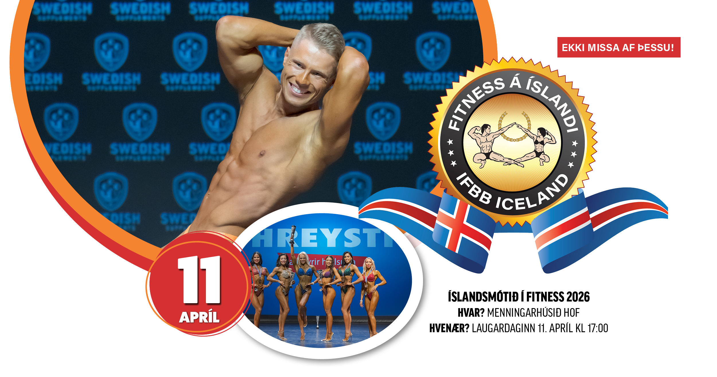 Heim Keppnir Innanlandsmót 2026 Keppnir Innanlandsmót 2026 Höfundur Einar Guðmann - 16. október, 2025 Íslandsmót IFBB í fitness 2026 verður haldið 11. apríl í Menningarhúsinu Hofi á Akureyri. Ekki liggur fyrir hvort haldið verði bikarmót að hausti. TENGDAR GREINARMEIRA FRÁ HÖFUNDI Myndband frá Íslandsmótinu í fitness 2025 Myndir og úrslit Íslandsmótsins í fitness 2025 Glæsilegt Íslandsmót í fitness um næstu helgi Alþjóðleg mót IFBB á árinu 2025 Úrslit Íslandsmótsins í fitness